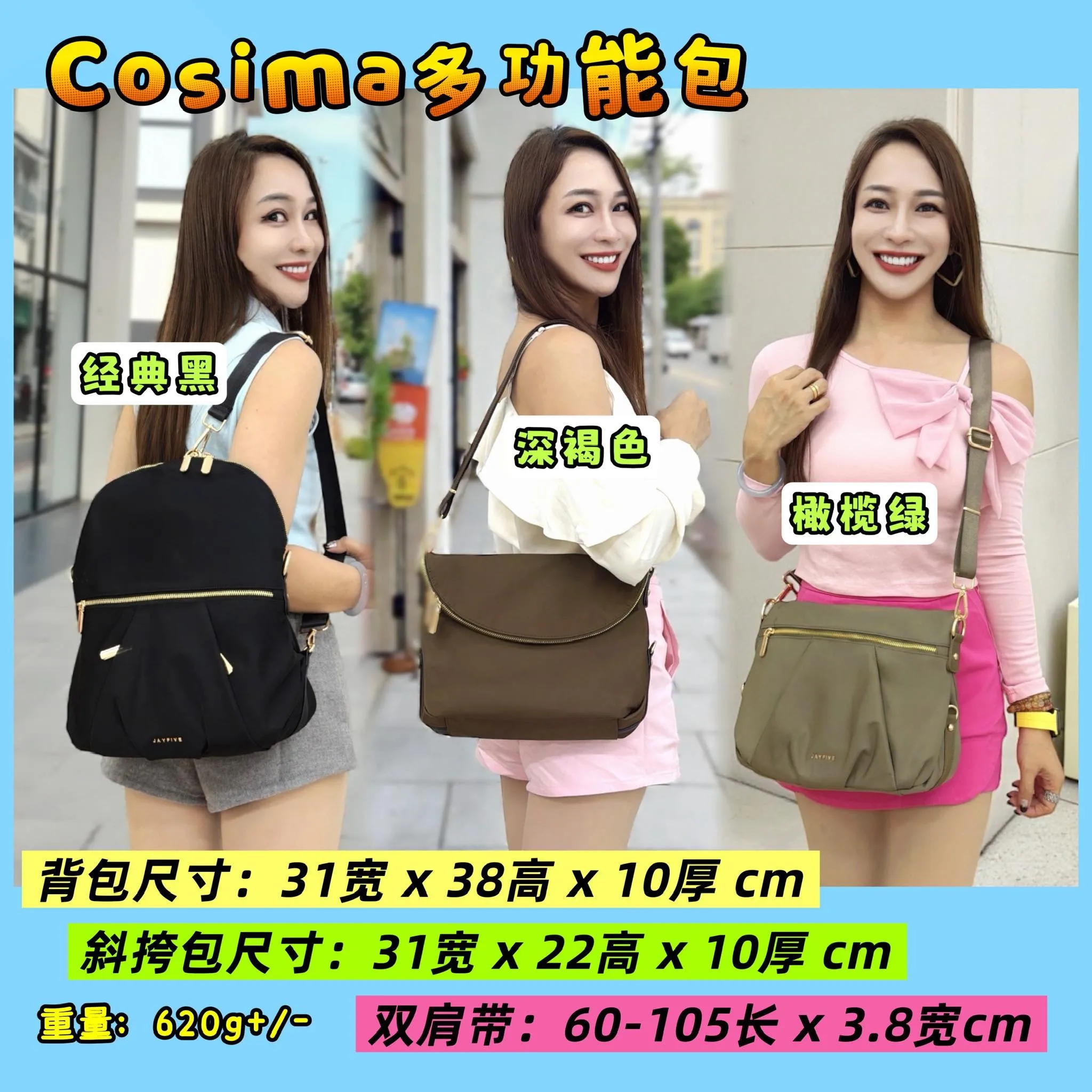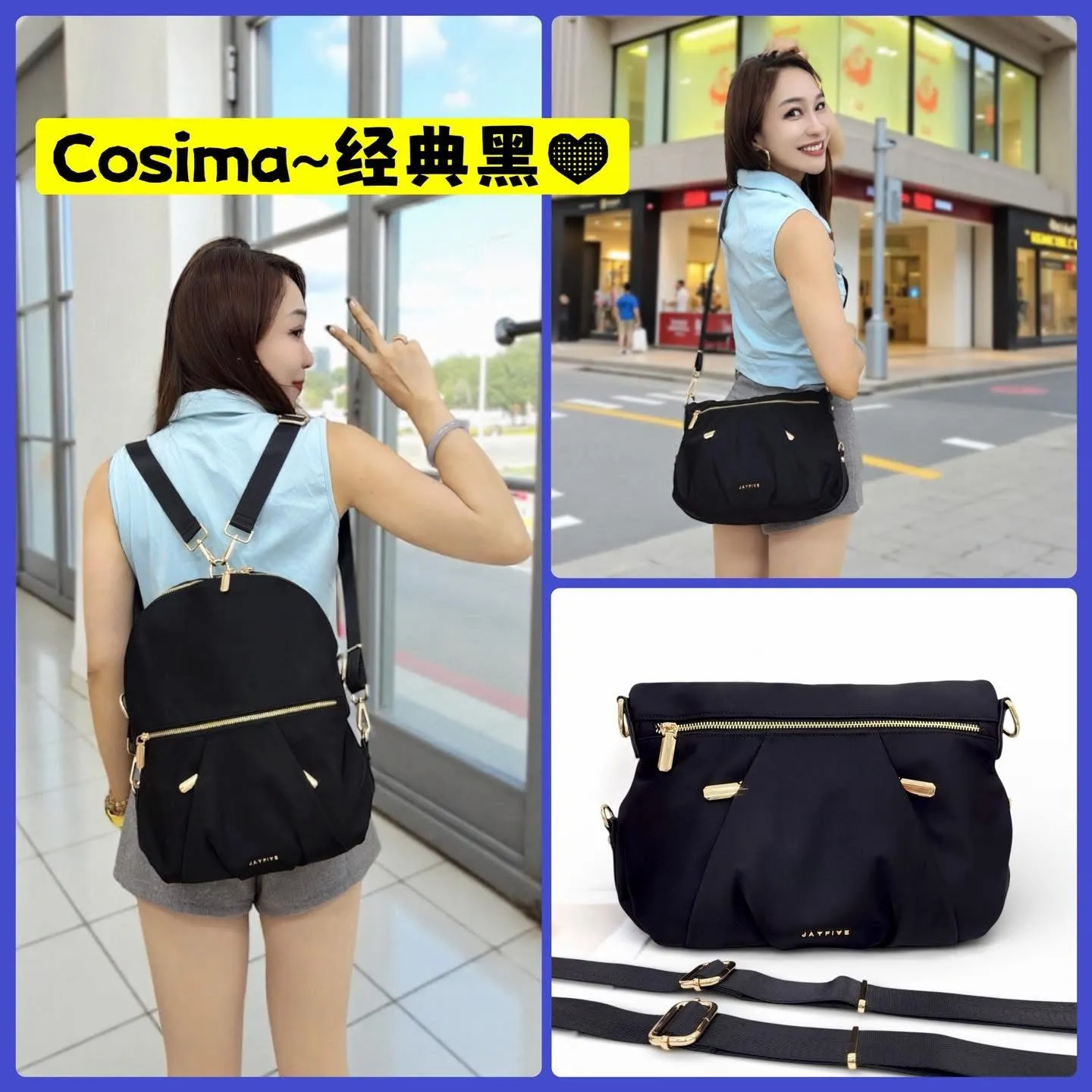 JAYFIVE Cosima Multifunction Premium Nylon Bag
